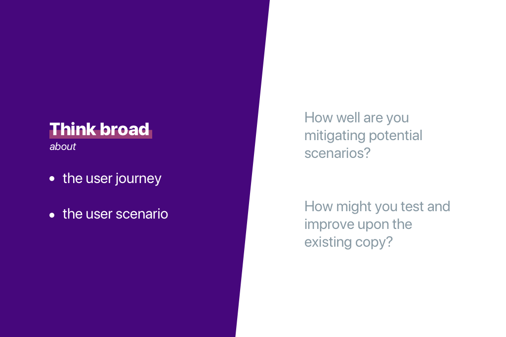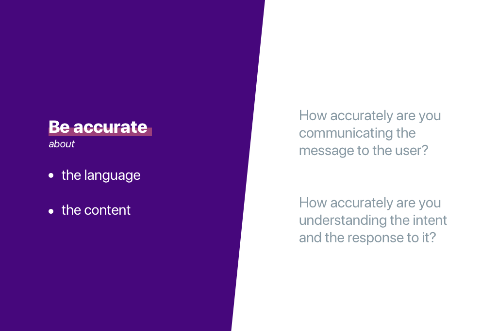 Besides making sure that whatever response we’re creating is in plain English that the user can easily understand, we also need to check our understanding of the material we’re using to craft our copy. If we don’t get what something means precisely, it will impact our ability to relay it to the user.