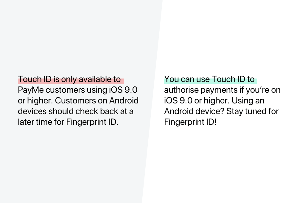 It’s always an honour to hear other teams across HSBC cite PayMe as the direction they’d like the copy for their projects to take, even 2 years after I left the PayMe team.