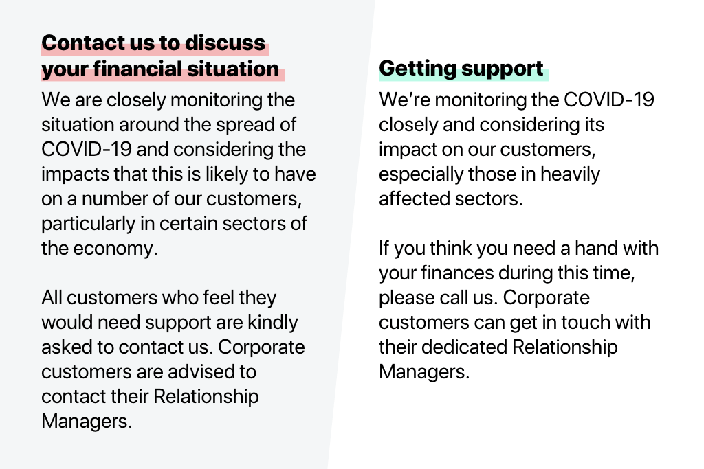 Edit the copy that will go into HSBC Armenia’s coronavirus information hub so that our customers know what they can do to manage their finances during this period and how we can support them.