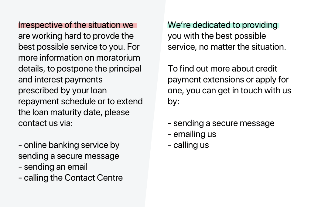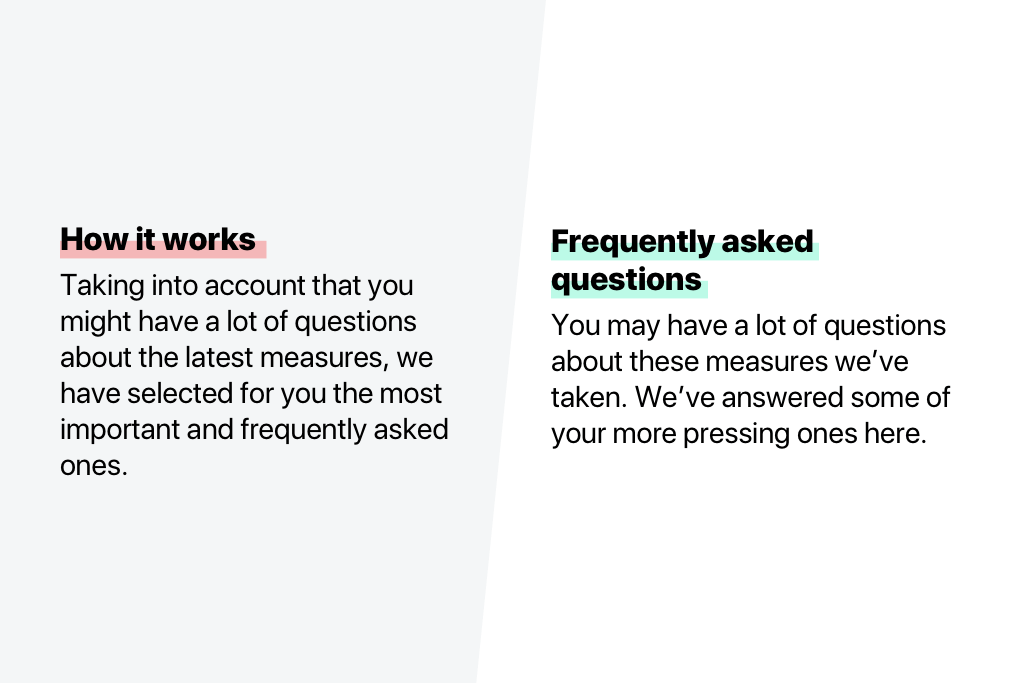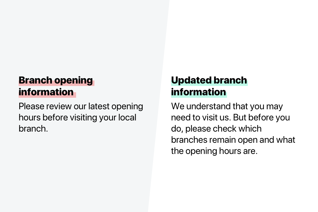 We had to rewrite the copy as some of it sounded like legal jargon. And because we could all do with a little reassurance and friendliness in a time like this.
